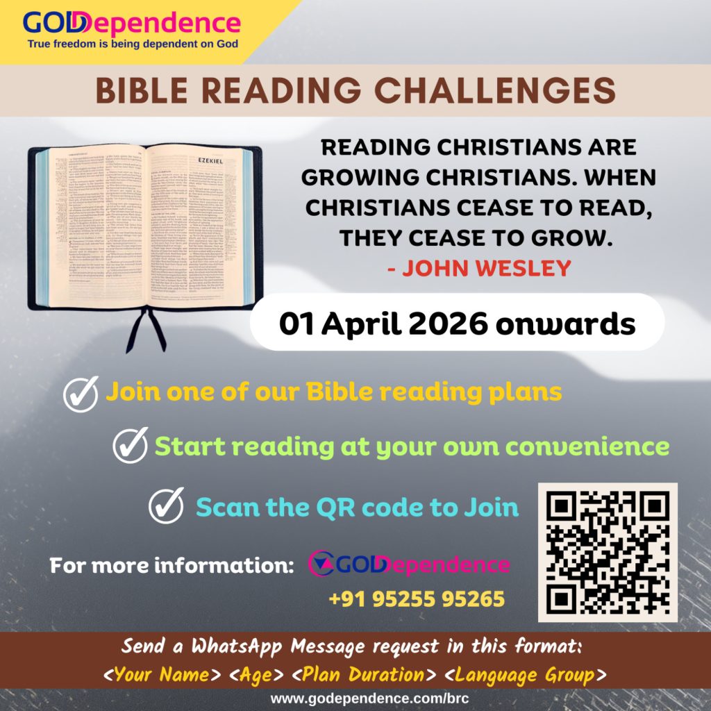 If you have not ever read the whole Bible to learn the wholesome blessings and teachings God has preserved for us, We, GODependence, invite you to join one of our “Bible Reading Challenges”, which starts on 01 April 2026. We are confident that you will never regret it once you make a decision to read the Bible and read regularly with us.